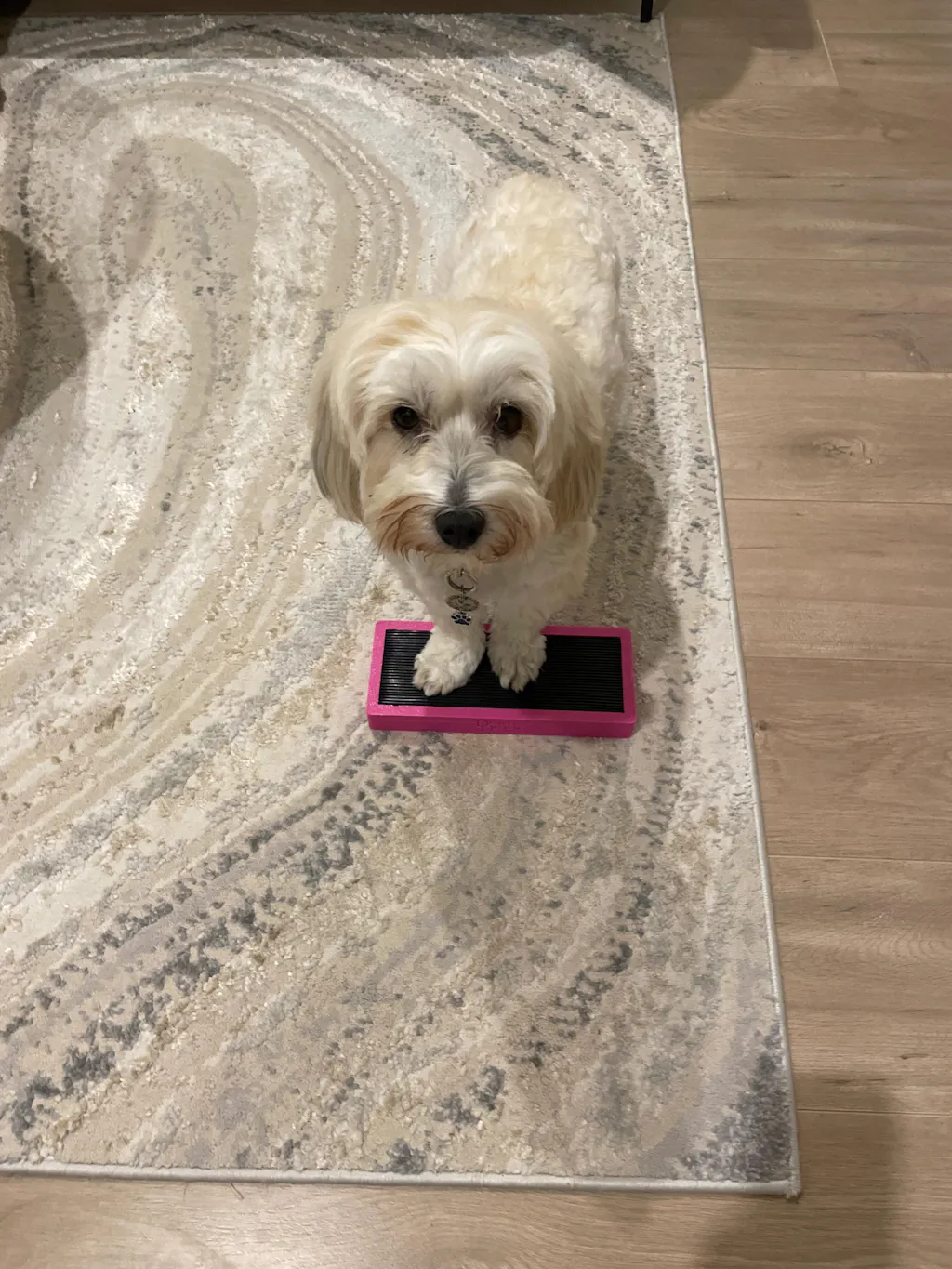 I placed this on the ground and my dog gravitated to it. We are working on lateral movement for an advanced trick and in two sessions we have more clarity in what I want her to do. It must be the perfect height and feel underfoot or something.